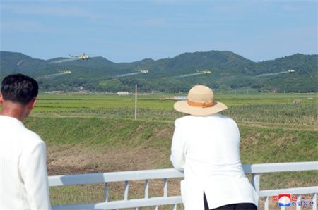 朝中社特别提到,为改善涝田农作物生长状态,金正恩要求采取措施动员朝鲜人民军空军部队的直升机和小型运输机,并亲自组织指挥农药撒布作业。