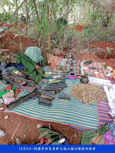 2023年12月3日,“1027行动”已进入第38天,上午10点20分,缅甸民族民主同盟军(MNDAA)对果敢老街东城外围的缅军马海山据点发起攻击,11点46分成功占领,缴获部分武器弹药。与此同时同盟军还于上午10点16分向三大岩山脚的3个缅军据点进行搜索清剿,并于11月16日占领这3个据点。