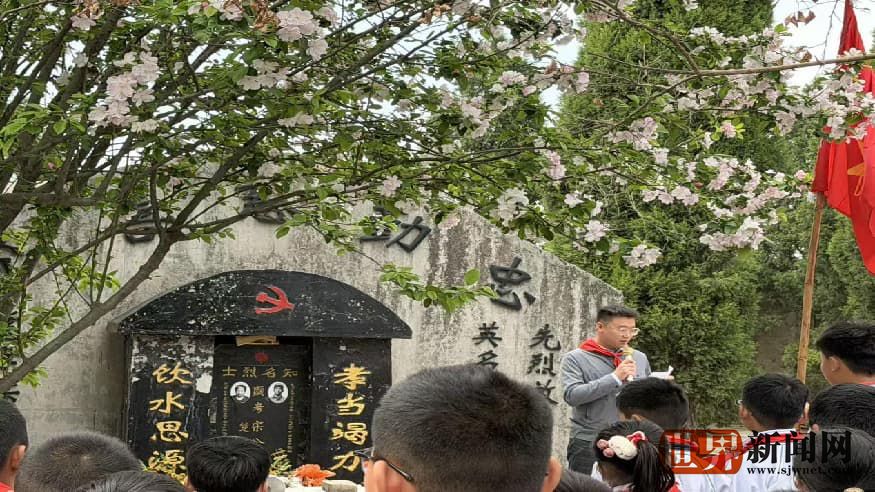 鲜红队旗迎风飘扬,师生代表怀着崇敬肃穆的心情,举行了庄重的悼念仪式。少先队员代表敬献鲜花,全体师生肃立默哀,深切缅怀革命先烈的不朽功绩。房多振校长深情讲述烈士事迹,带领师生重温峥嵘岁月;少先队员代表发言并领誓,铮铮誓言响彻纪念碑上空。最后,沙镇镇团委书记井同总结致辞,勉励全体学生心怀感恩、勤学笃行,以青春之力报效家国。