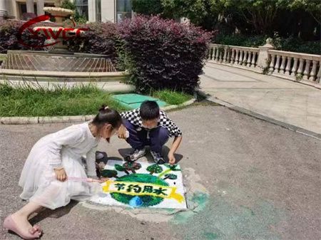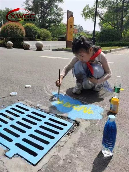 活动中,小学员们分组在窨井、下水道口的盖子上挥毫作画。绘画以“爱护地球,绿色环保”为主题,分“节约用水”“节约用电”“爱护绿色”“文明养犬”等多个单元。头顶蓝天丽日,身边鸟语花香,孩子们调色匀彩,兴高采烈。由于窨井盖表面粗糙,难于着色,小学员们在老师的指导下,耐心细致地涂抹水彩,一笔一笔画出了满意的作品。