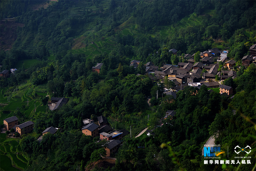 菖蒲大草原位于重庆市酉阳县菖蒲盖山脉,面积约100平方公里。盛夏时节,草原披绿,牛羊成群,在山城重庆就能体验“风吹草低见牛羊”的美丽盛景。图为草原边缘的何家岩古寨。