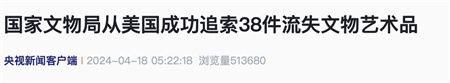 当地时间4月17日,国家文物局从美国成功追索38件流失文物艺术品。返还仪式在中国驻纽约总领事馆举行,美国纽约曼哈顿区检察官办公室将缴获的38件中国流失文物艺术品移交中国政府。