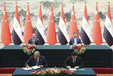 双方发表《中华人民共和国和阿拉伯埃及共和国关于深化全面战略伙伴关系的联合声明》。