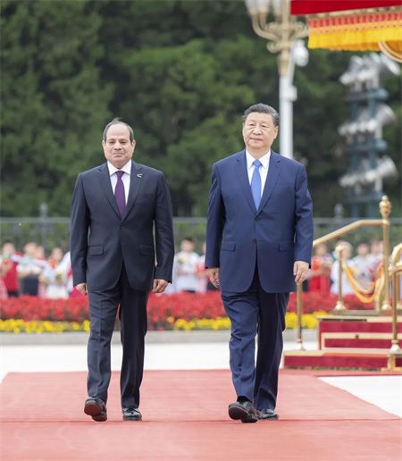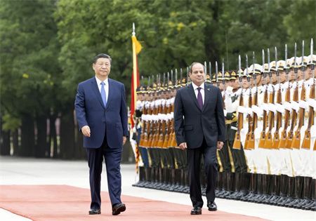 塞西抵达时,礼兵列队致敬。两国元首登上检阅台,军乐团奏中埃两国国歌,天安门广场鸣放21响礼炮。塞西在习近平陪同下检阅中国人民解放军仪仗队,并观看分列式。