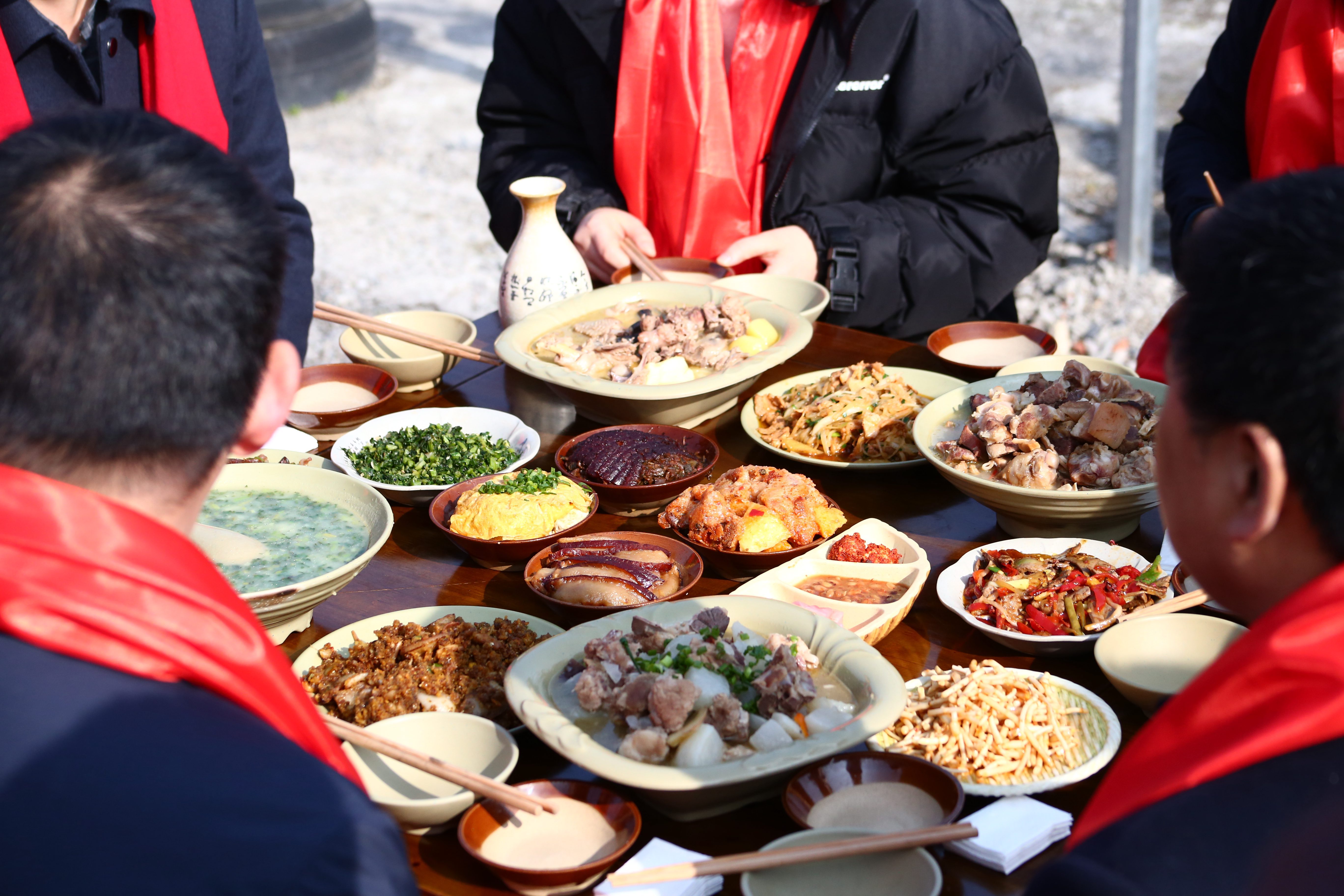 刨汤肉煮好了,开席!大家招呼着入座,上菜喽。