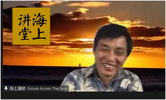 “海上讲堂”是由夏威夷跨学科研究所于2001年成立的跨学科俱乐部,面向全球,每月至少一次聚会。著名美籍华人学者、著名哲学家成中英先生任顾问;催化生物陶技术、微鼻重金属过滤技术发明人、美国夏威夷跨学科研究所所长环境专家董良杰先生任秘书长,组织、策划和主持讲堂。海上讲堂致力于华夏文化与西方文化深度交流,启发深度思考,具有立足时代前沿、视角高屋建瓴、文化中西通达、学术思想精简等特点。讲堂通过Zoom等技术平台为全球学者分享,并通过youtube直播、《中英学术》等多个公众号短视频和文字传播等方式,为东西方学界所关注。