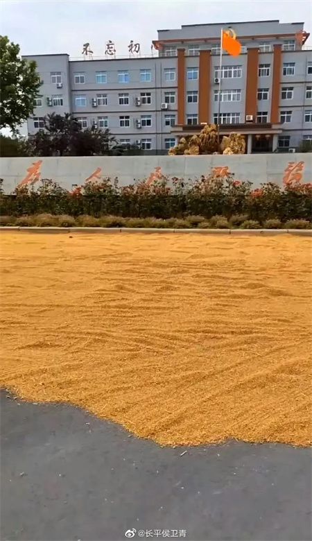 据了解,当地是产粮大县为方便农民晾晒小麦乡政府把院内所有空地腾出让附近农户晒粮