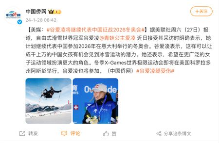 美媒:谷爱凌计划继续代表中国征战2026冬奥会