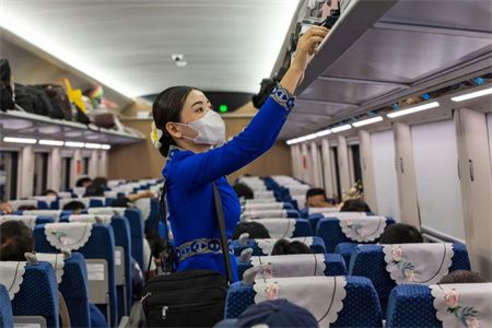 飞驰的动车上 中老两国列车工作人员 密切配合、互帮互助、赓续友谊 共同在中老铁路上 以优质服务 迎接来自世界各地的旅客