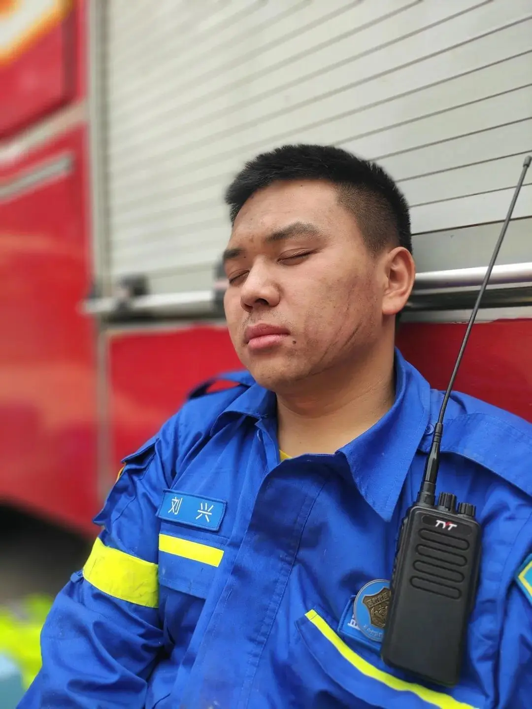 卡散史布所在的民办灭火队坚持了三天两夜,累了就在山下公路边调整片刻。同时他们也为同赴战场的工作人员搬运物资,做好一线消防队员的后勤保障工作。