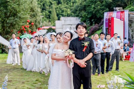 “早就听闻翡翠谷是爱情圣地,一直想来,正好趁这次活动和爱人参加集体婚礼。这里不愧是当年周润发、章子怡拍《卧虎藏龙》的地方,池水就像翡翠一样,碧绿清澈,满足了我所有期待,上午还有摄像大咖给我们拍了婚纱照,期待成片!总之,非常满意这次旅行,明年推荐我朋友来参加!”来自南京的孔凯文&牛姝琪夫妇对此次集体婚礼评价颇高。