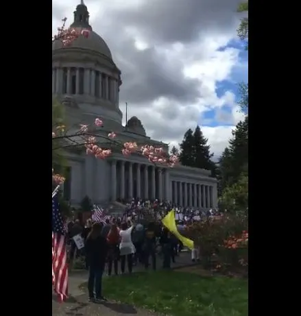 据路透社当地时间4月20日报道,19日,大约有2500人聚集在华盛顿州议会大厦,抗议民主党州长英斯利(Jay Inslee)的隔离令。