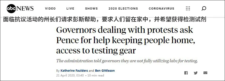特朗普16日公布“复工三步走”模式,表示在各州自行决定的基础上,最早5月1日开始部分复工。但是第二天(17日),特朗普又连发3推呼吁“解放明尼苏达州”;“解放密歇根州”;“解放弗吉尼亚州”,他此举被认为是和抗议者站在一边,是对那些反对“保持社交距离者”的支持。