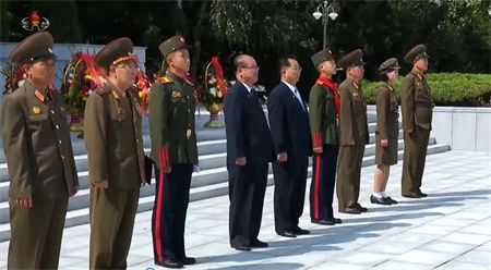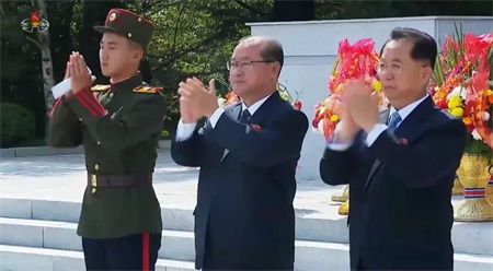 9月19日,当金正恩结束访俄、专列正驶往平壤的时候,朝媒报道了上述壁画竣工典礼的消息。劳动党中央书记李日焕和党中央第一副部长李熙用参加了典礼;其中,李日焕是万景台学院的知名校友。在今天万景台学院的学生们中,未来也会出现这样的大人物;比如作为学生代表致词、站在李日焕右手边的这位小伙子,就有这样的可能(下图)。