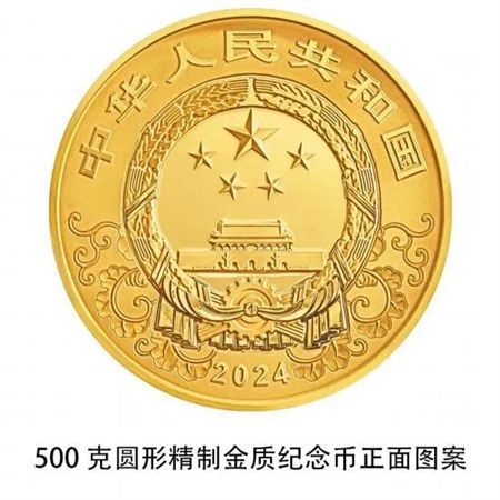 背面图案共12幅,均刊“甲辰”字样及面额。其中,10公斤圆形金质纪念币背面图案为龙造型,衬以祥云组合设计。