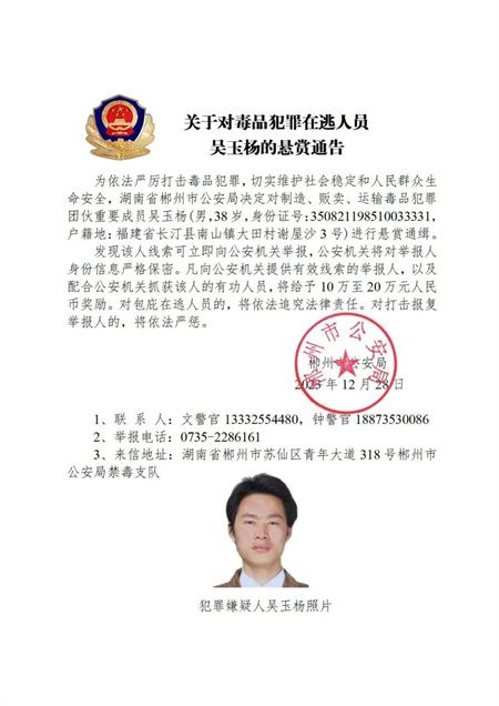其中,湖南省郴州市公安局决定对张安龙、马文祥、吴玉杨进行公开悬赏通缉;湖南省株洲市公安局决定对杨金梅进行公开悬赏通缉;江西省新干县公安局决定对曾小勇、李国平、孙强进行公开悬赏通缉;浙江省温州市公安局决定对颜欢平进行公开悬赏通缉;四川省遂宁市公安局决定对母朝东进行公开悬赏通缉;贵州省黔东南州公安局决定对龙华进行公开悬赏通缉。
