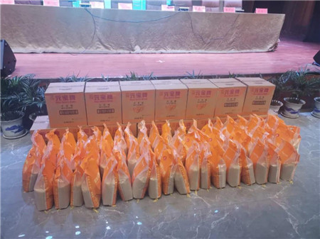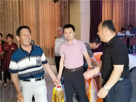 会后,王东庆经理把大米、油分发各个老人手中,东龙酒业六名工作人员纷纷投入到扶贫工作中。