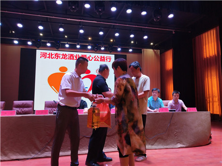 东龙酒业经理王东庆在捐赠仪式上为大家热情讲话,并对此次扶贫活动进行了详细周密的工作安排。大力呼吁社会各界高度重视扶贫工作,将精准扶贫工作做实、做细,把精准扶贫的温暖传送到每一个留守孤寡老人家中。