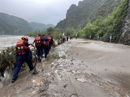 25名消防员穿越落石塌方山