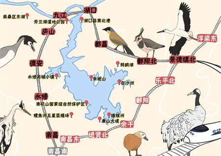 杭昌高铁黄昌段穿越长江江豚繁殖地鄱阳湖、无公害水产品养殖基地军山湖、白天鹅群居栖息地金溪湖,跨越信江、乐安江、昌江等十余条河流,以及多个动物保护区和风景名胜区。