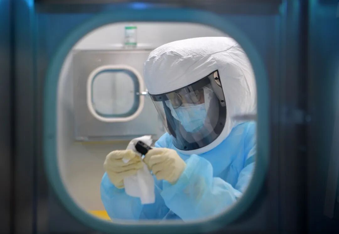 2020年2月21日,天津支援湖北恩施医疗队员熊素平在实验 室开展工作 杨顺丕/摄
