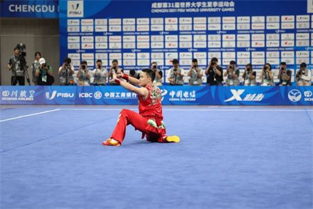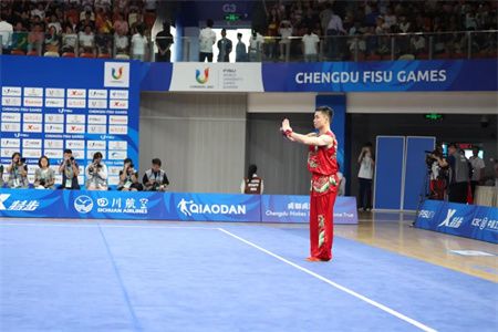 成都大运会首金诞生!中国选手曹茂园在武术项目男子南拳中夺冠