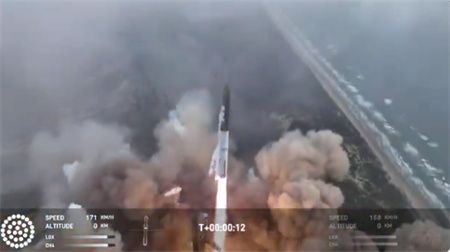 美媒:Space X“星舰”重型火箭第三次试飞发射升空