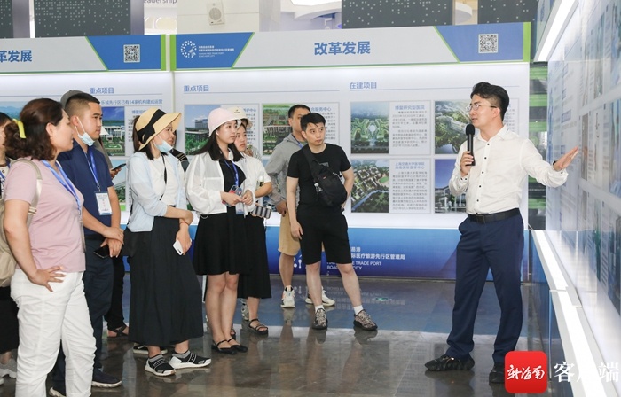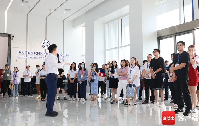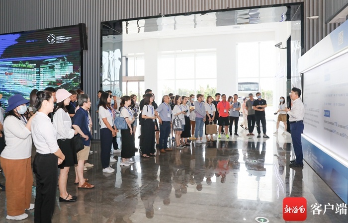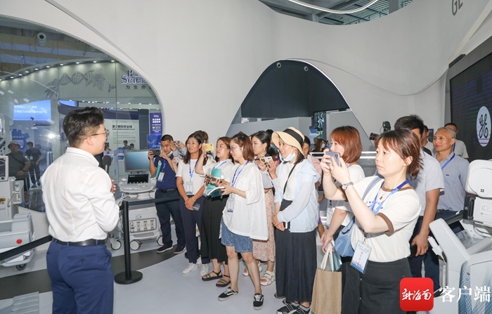 媒体采访团的记者编辑们走进琼海博鳌乐城国际医疗旅游先行区国际创新药械展参观采访。记者 李昊 摄