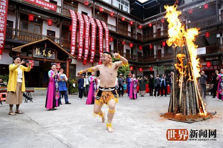晚宴前,进行了肉连响、吹打、说席等非遗表演,让游客感受浓郁的土家文化。