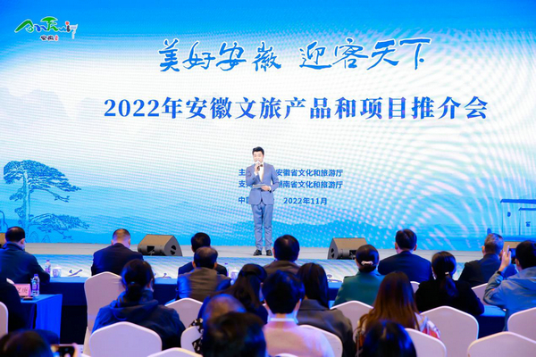 美好安徽,迎客天下。11月22日,“2022年安徽文旅产品和项目推介会”首站在湖南长沙成功举办。此次活动由安徽省文化和旅游厅主办,旨在贯彻安徽省委、省政府部署,统筹做好疫情防控和文化旅游业恢复发展,进一步对外宣传推介安徽优质文旅产品和项目,促进皖湘两省文化旅游合作交流和市场互动。芜湖、池州、安庆、黄山四市文化旅游部门负责人和相关科室负责人参加会议,湖南省重点旅行商和投资商代表、相关协会及媒体代表共同参加了本次会议。