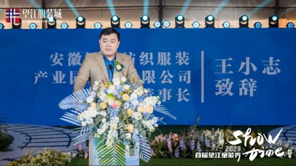 随后本次活动的主办方,安徽国联纺织服装产业园发展有限公司董事长兼总经理王小志先生致辞。他说,望江服装城已如燎原之势,不可阻挡。正在规划建设的滨江新城正带动纺织服装产地集聚,这里、现在,正是纺织服装产业的蓝海,数不清的机遇正等着每一位纺织服装产业人前来发掘。2023望江童装秀,是一场产业与新城的对话,是一次服装与时代的畅想,更是关于新时代望江纺织服装产业的践行。