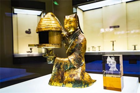 午饭后乘地铁前往 位于石家庄东大街的河北博物院 这座国家一级博物馆 有《石器时代的河北》《河北商代文明》 《大汉绝唱——满城汉墓》等10个常设展览 馆藏刘胜金缕玉衣、长信宫灯等珍贵文物 等你去一睹真颜
