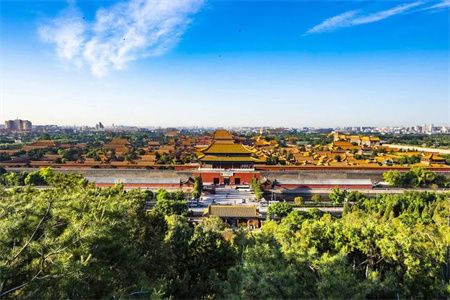 位于北京中轴线中心点的景山公园 与故宫神武门隔街相望 曾经是北京城中心的最高点 登上景山可以一览京城美景 向南,是故宫全貌 向东,是国贸CBD建筑群 向东,是钟鼓楼和北京奥林匹克塔 向西,是北海公园