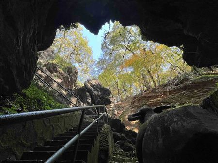 欲寻传奇故事探访金牛洞最佳就在大茅峰南陲金牛岭西坡半腰的密林翠竹之中看起来普普通通却别有洞天相传汉代时有人于洞内采金曾掘得金牛一尊此牛经丁角、上栏、下栏、奔牛等地最终跃入东海