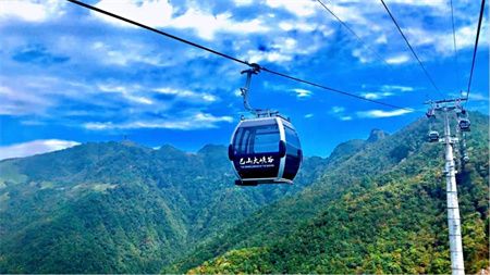 ▲冬日里,巴山大峡谷瑞雪纷纷,游客乘坐罗盘顶索道欣赏雪景。