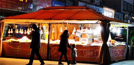 临时摊点聚集了各色美食
