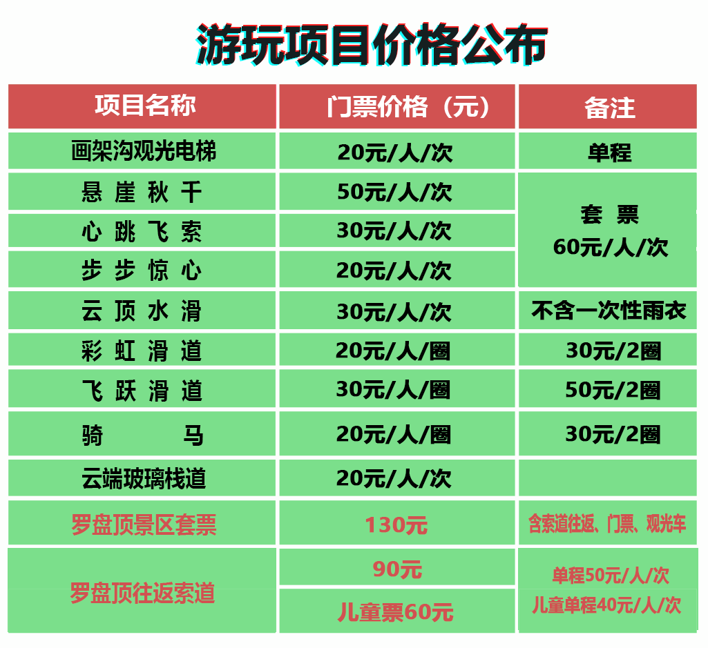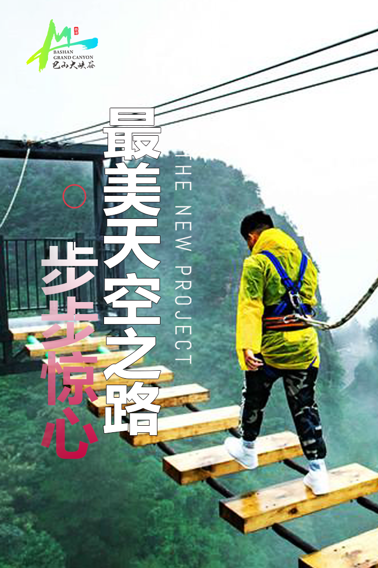 劲爆好消息 巴山大峡谷 最新游玩项目震撼上线 要的就是尖叫 玩的就是心跳 嗨/翻 悬崖秋千 心跳飞索 步步惊心 垂直电梯 云顶水滑 彩虹滑道 飞跃滑道 骑马遛马 珠帘戏猴 云端玻璃栈道 巴山大峡谷狩猎场 ( 画架沟观光电梯,高达160米,位于巴山大峡谷桃溪谷画架沟景点。乘电梯直上,透过观光玻璃可将巴山大峡谷的美景尽收眼底,直升160米高度从电梯出来,可看到白崖绝壁,岭脊峰丛,叹为观止!) (悬崖秋千,位于巴山大峡谷罗盘云顶红豆杉栈道西站。坐上秋千,即便安全防护周全,依旧会心跳加速!在数百米的悬崖边缘被拉至与地面呈90°,然后骤然起飞!眼望脚下万丈深渊,卷着风飞去,爽出天际!) (心跳飞索,位于巴山大峡谷罗盘云顶红豆杉栈道西站。滑索横跨罗盘云顶两高峰之间,徒步行走需要1小时才能到达,通过滑索只需要几分钟!堪称速度无极限!做好准备,用力起飞,来一场速度与激情的体验!感受自由带来的快感,感受飞翔带来的刺激!) (步步惊心,位于巴山大峡谷罗盘云顶红豆杉栈道西站。胆小的人应该无暇顾及罗盘云顶的景色,这绝对是最美的“天空之路”!不要着急跨出下一步,驻足片刻,整个巴山大峡谷都是你的!) (云顶玻璃水滑,位于巴山大峡谷罗盘云顶,超长的玻璃滑道,穿峡谷,掠树梢,飞湖面,在空中蜿蜒盘旋,超爽刺激!坐在气囊中随水顺势而下,忍不住惊呼:太爽啦!) (珠帘戏猴,位于巴山大峡谷桃溪谷珠帘瀑布景点,几十只可爱的猴子将常驻巴山大峡谷!可爱灵敏的猴儿们将与游客亲近互动!除了观赏峡谷美景,与动物互动,让您与大自然更亲密!记得带零食,可投喂哦~) (彩虹滑道,位于巴山大峡谷罗盘顶滑雪场。色彩绚丽的滑道像一道彩虹挂在高处,从高出倾泻而下,五彩斑斓,十分吸睛!从长长的滑道飞驰而下,整个身体仿佛从高彩虹中穿过,好玩指数简直N颗心~) (遛马场,位于巴山大峡谷罗盘顶滑雪场。与家人孩子一起骑马遛马,驰骋马场,肆意挥洒。感受一下马背上的帅气与潇洒,释放生活压力!) (云端玻璃栈道,位于巴山大峡谷罗盘顶。5D效果,亲身体验走在“悬崖”的刺激!在罗盘顶感受凌空漫步的惊险!) (巴山大峡谷狩猎场,位于桑树坪露营基地前往罗盘顶方向。狩猎是贵族的终极运动,深度感受原始森林的自然魅力及人类原始狩猎文化!射箭、飞刀、弹弓、越野!刺激好玩!) 更多游玩项目等你解锁 五月来巴山大峡谷 壮 壮 胆 惊险·刺激·挑战 尽在巴山大峡谷