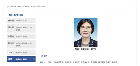 据(中国妇女报)消息福建省财政厅“省财政厅领导”一栏显示,李洁已任福建省财政厅党组成员、副厅长。