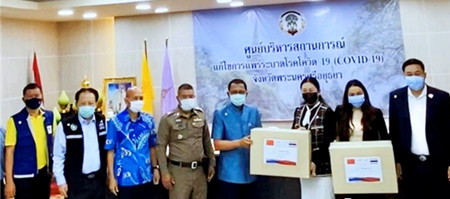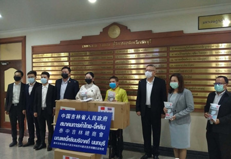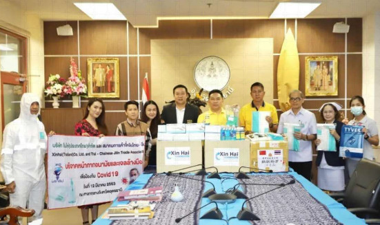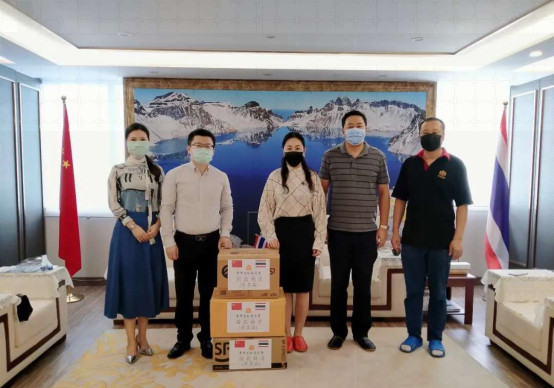 泰中吉林总商会在会长于琳琳的带领下向泰国乌隆府、在泰的中国留学生、泰国佛统皇家大学、泰国格乐大学、泰国皇家武装部队(ROYAL THAI ARMED FORCES HEADQUARTERS)、泰国大城府、泰国暖武里府捐赠防疫物资共计医用口罩77000只、防护服50套、消毒洗手液5904瓶、酒精喷手液300瓶、手套30箱、防护面罩200个。