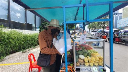 这名男子名叫松萨格达(音译),12岁开始出来销售青芒等酸水果小吃和饼干,为了帮助家庭维持生计。后来,他决定从事卖水果小吃的推车生意。