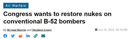 美国《防务新闻》19日称,美国国会在2025财年国防政策法案中已要求美国空军多达30架B-52H战略轰炸机恢复核能力。这也意味着未来美国空军所有轰炸机都将具备核打击能力。