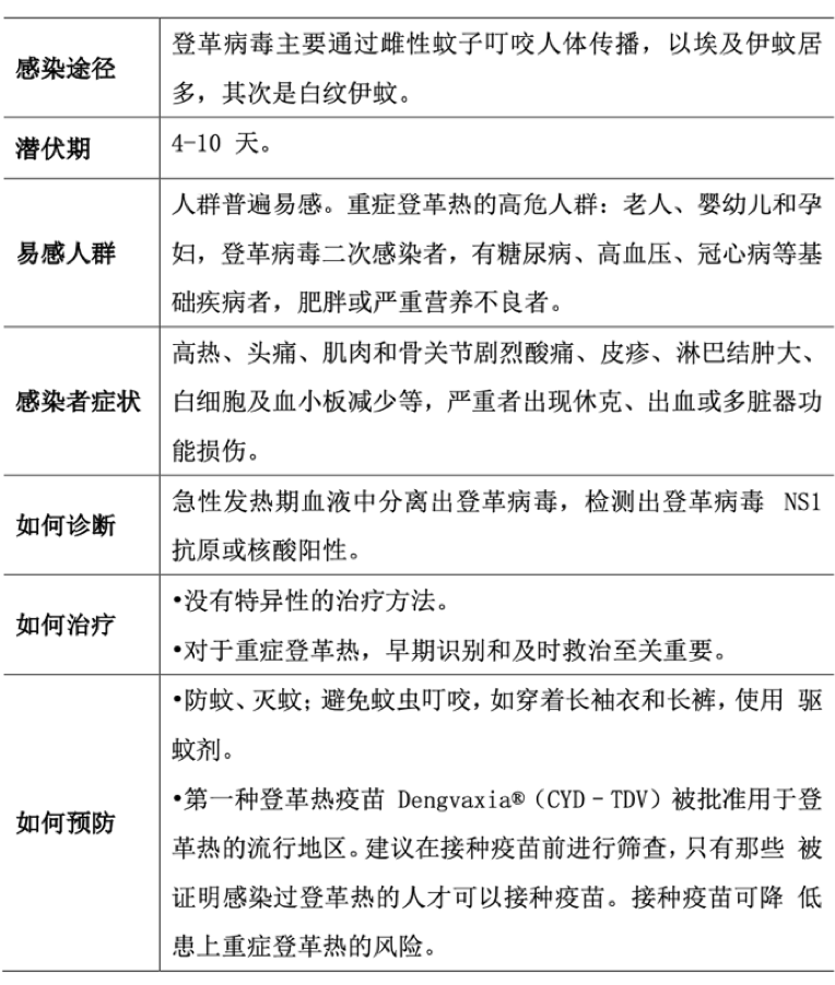 1.登革热在什么地区高发? 由于全球气候变暖及快速城市化等原因,全世界的登革热病例数相比30年前增速明显。登革热在东南亚、西太平洋地区、美洲、地中海东部和非洲等地区已经成为一些国家的地方性流行病,而且有些地区的疫情较为严重。如果要去这些地区旅行,需要注意防范登革热。 中国出现本地传播病例的地区也越来越多。登革热的主要传播媒介是白纹伊蚊和埃及伊蚊。白纹伊蚊俗称“花蚊子”,在我国分布广泛,作息时间和人相反,日出前后和日落时分是它们“上班”的高峰时段。埃及伊蚊主要分布在海南、广东、云南等地区,是典型的“家蚊”,喜欢和人类共处一室,所在即使是在家里,也要注意驱蚊灭蚊。 2.感染一次登革热后,会产生免疫力吗? 目前已知的登革热有四种类型。人在初次感染其中一种登革病毒后,就会对同型病毒产生较持久的免疫力,可持续数年,但对其他类型的登革病毒的免疫力只能维持很短时间。 3.如何防控登革热? 对于普通人来说,应对登革热传播的主要手段还是消灭身边的蚊子,起码不要让它们近身。 对于临床工作者来说,最关键的是要监测登革热症状患者,及时合理处置重症登革热患者。 无论是在登革热流行地区,还是在非流行地区,医务人员都应该掌握重症登革热的警示体征,减少和避免登革热死亡病例的出现。今后,可能会有更多地区把登革热作为常见传染病纳入常规管理。