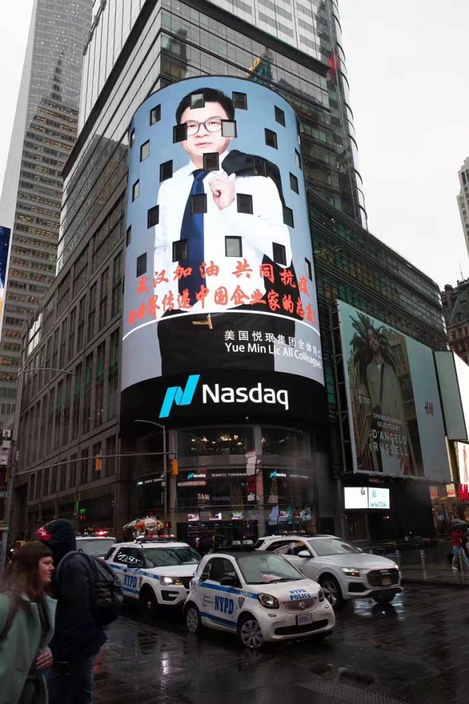 姜柳均先生登上美国纳斯达克大屏为武汉加油祈福