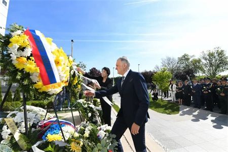 据中国驻塞尔维亚大使馆微信公众号消息,5月7日,驻塞尔维亚使馆举行纪念活动,缅怀在1999年北约轰炸中牺牲的邵云环、许杏虎和朱颖三位烈士。陈波大使和全体馆员,塞体育部长加伊奇,贝尔格莱德副市长维多维奇,塞记者协会代表,以及我新闻机构驻塞记者、中资机构、华侨华人和友好人士代表等出席活动。全体人员在纪念碑前肃立默哀,并向烈士纪念碑敬献花圈。