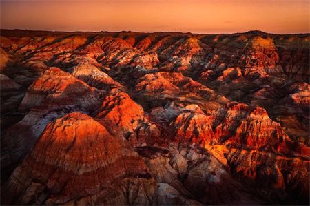 丹霞地貌是一种以陆相为主的红层发育的具有陡崖坡的地貌,是红色沙砾岩在内外合力作用下发育而成的顶平、身陡、麓缓的方山、石墙、石峰、石柱奇险的地貌景观。若有空来到这里,你会发现眼前的丹霞地貌犹如大自然打翻的调色盘。