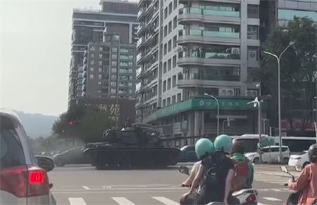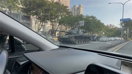 高雄市22日有战车出现在街头,不少网友捕捉到画面。图源:台媒