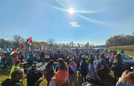 图为11月11日,数百名巴勒斯坦支持者聚集在拜登家附近,敦促其推动加沙停火,抗议者们挥舞着数十面巴勒斯坦国旗 图源:外媒