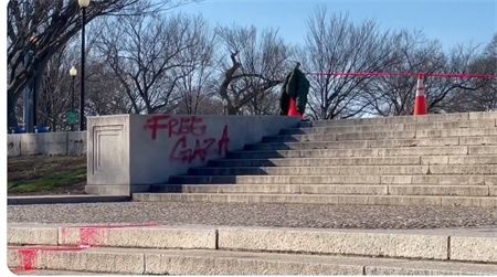 据美国全国广播公司(NBC)下属华盛顿频道20日报道,美国公园警察局警方称,位于美国华盛顿的林肯纪念堂外遭人用红色油漆涂鸦破坏,工作人员正进行清理。 位于美国华盛顿的林肯纪念堂外遭人用红色油漆涂鸦破坏。图自社交平台X 报道称,据警方透露,破坏行为于当天早上被发现。有画面显示,林肯纪念堂外的台阶及地面上,被喷上“解放加沙”、“解放巴勒斯坦”和“归还土地!!”等字样,台阶上溅满了红色油漆。 报道说,警方随后封锁该地区,美国国家公园管理局工作人员开始清理这些涂鸦。“国家公园管理局的管理员今天早上已经开始清理工作,可能需要数天多次的处理才能全部清理掉。”管理局发言人迈克尔·利特斯特说,在完成清理之前,林肯纪念堂倒影池西侧的台阶不对游客开放。美国林肯纪念堂外遭红漆破坏,被涂鸦“解放加沙”“归还土地”等字样