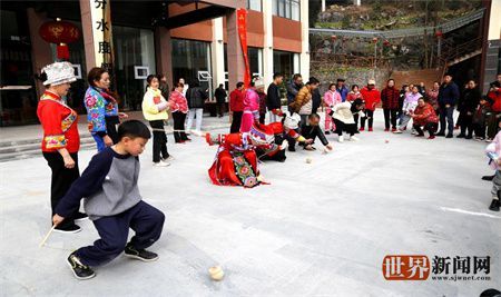 世界新闻网湖北讯(记者张春/通讯员任茂盛)日前,在团堡镇分水度假村,来自市内外的200余人围坐在一起打糍粑、吃刨汤、打陀螺,体验土苗民族特色风俗,热热闹闹过大年。