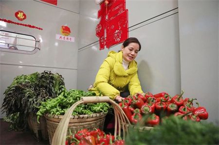 近日,在昆明至元谋西7466/7465次“慢火车”上,一场以“乡村振兴展现新气象 铁路帮扶情暖千万家”为主题的“年货街”活动开张。